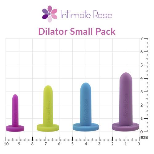 The Intimate Rose collection includes small, medium and large sets. Each set comes with 4 individual dilators ranging in sizes depending on the set you choose. The full vaginal dilator set includes all 8 dilators.